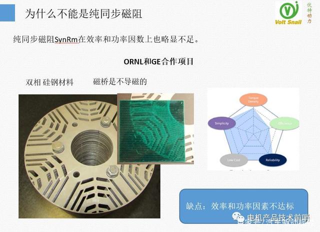 MotorBrain的技術(shù)指標落后是因為采用了較傳統(tǒng)的同步磁阻技術(shù),另外一個先進同步磁阻電機項目是橡樹林(ORNL)和GE合作的項目。采用雙相硅鋼材料作為轉(zhuǎn)子沖片材料。改項目還在進行中,目前和先進IPM電機相比仍然存在效率和功率因數(shù)方面的差距。(詳細見文末鏈接)