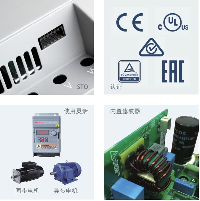 Rexroth EFC 3610 & 5610產(chǎn)品是針對(duì)全球市場,具有CE,UL,cUL,RCM,EAC,TüV,RoHS等國際認(rèn)證,在全球范圍內(nèi)為您提供統(tǒng)一的銷售和服務(wù)。